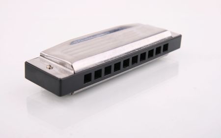 Silver diatonic blues harp isolated on white