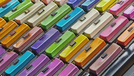 A visually striking abstract artwork featuring a colorful piano keyboard, blending vibrant hues to create a unique wallpaper background. Ideal for music lovers, creative designs, and artistic