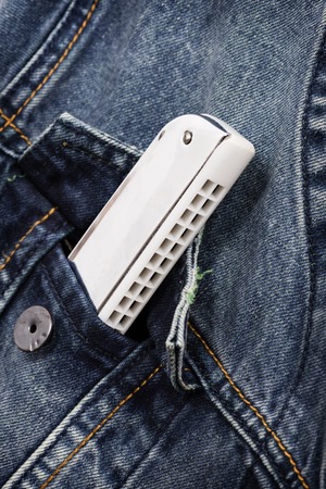 isolate harmonica in denim pocket