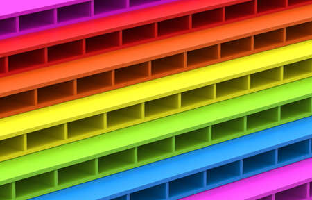 3d rendering. LGBT rainbow flag color brick block stack residential wall design background.