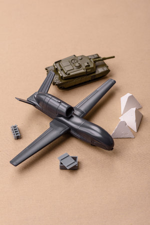 Toy tank with camouflage color. Military vehicles toy. Simple cheap toys for children, warfare, warzone vehicles