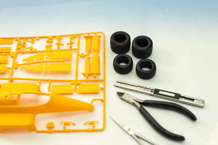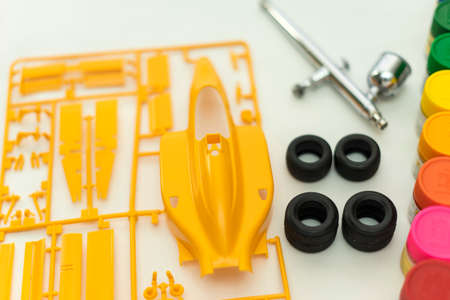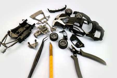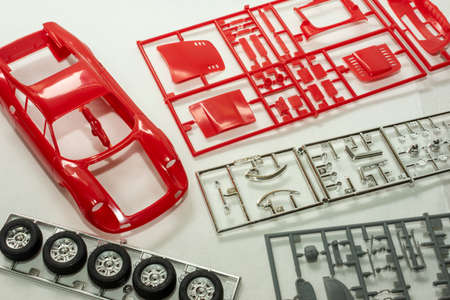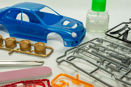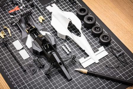 Assemble car plastic model for hobbyists , Hobby and leisure at home in quarantine.