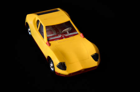 Collection scale model of retro car. Classic car with open door. Rarity. Red toy car on the white. History of automotive industry.