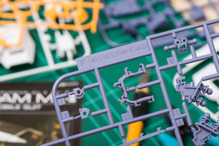 BANGKOK, THAILAND - AUGUST 11, 2015: Closeup letter runner on unassembled sprue of master grade RX-178 Gundam Mk-II Model.