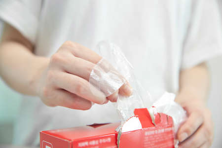 Woman holding a lot of medical face dust filter masks, disposable FFP3 respirators in packaging. Concept of coronavirus, air pollution, virus, flu and infectious diseases. A stock face mouth masks