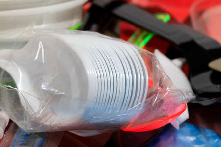 Lots of used plastic packaging container