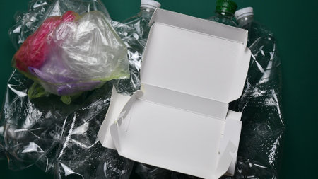 Crumpled plastic bags put in the card box, reuse and reduce plastic concept