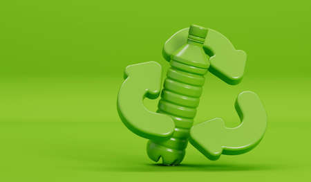 Waste plastic water bottle with a recycling symbol. 3D Rendering