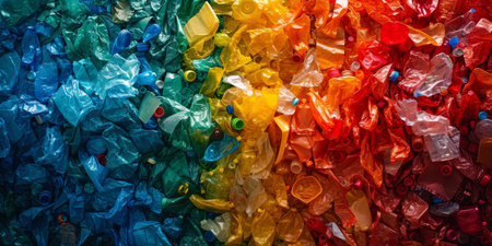 Transformed Plastic Waste Creates Vibrant, Ecofriendly Material For Reuse Colorful Recycled Plastics, Copy Space. Concept Gardening Tips, Diy Projects, Sustainable Living, Mindfulness, Healthy Recipes.