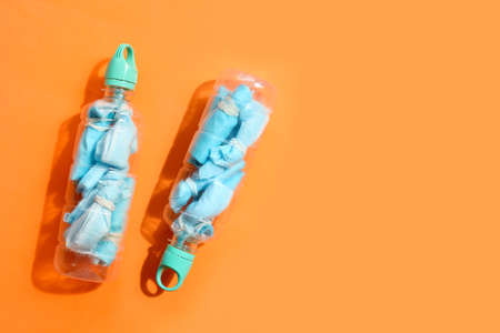 Prevent coronavirus, Used face masks in plastic bottles before littering