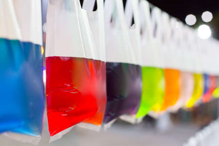 Selective focus of colorful water bags For decoration