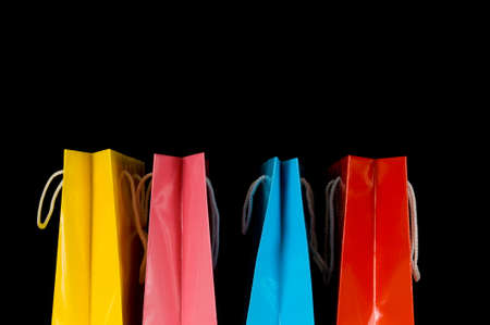 Multicolored shopping bags on black background