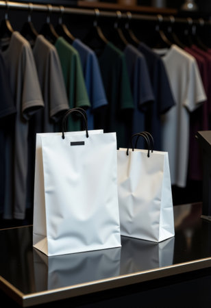 Shopping bag hanging in a clothing store outlet. Concept of consumerism