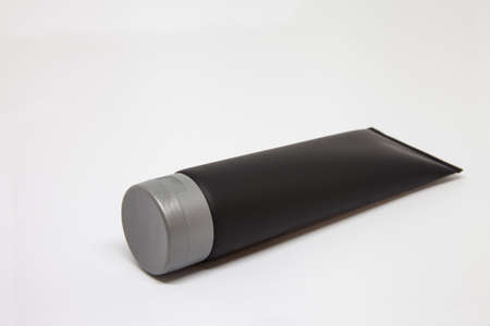Orange tube with cream in bright light on a white and orange background. Cosmetic creams.