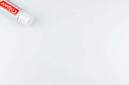 Puchong, Malaysia - July 16, 2019; Colgate toothpaste on white background. Brand of produced by Colgate-Palmolive.