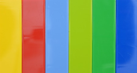 A stack of colorful foam forming a mulit-colored striped background