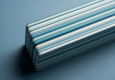 Close-up of a stack of paper sheets on a blue background