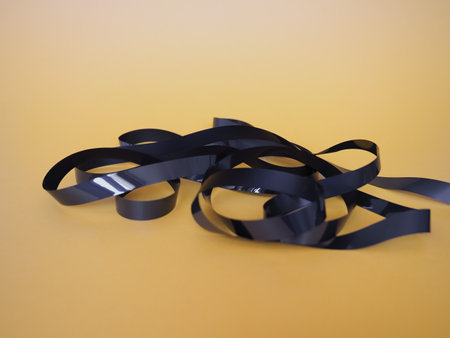 A top view of a magnetic tape for data storage in the yellow background with a copy space