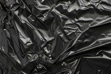Abstract Crumpled Black Plastic Background with Shiny Wrinkles,