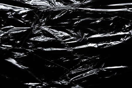 plastic texture of black cellophane on a crumpled bag