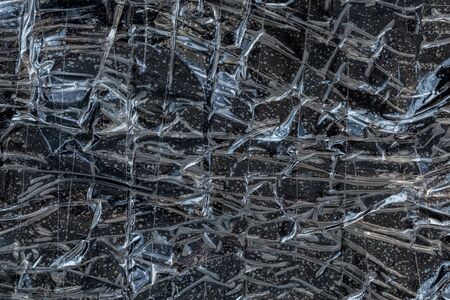 Crumpled clear plastic background, abstract glossy broken surface texture with creases
