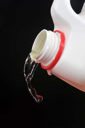 Pouring bleach close up on black background