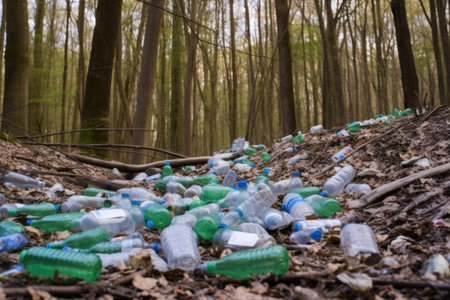 plastic bottles dumped carelessly in forest, created with generative ai