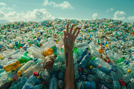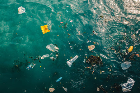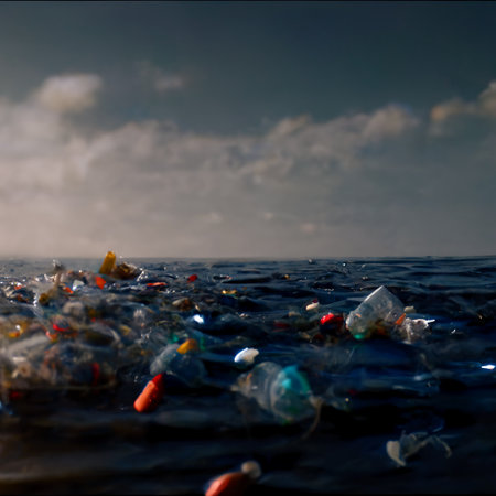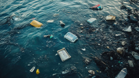 A stark depiction of plastic waste floating in ocean waters highlighting environmental pollution. This image conveys the critical need for conservation efforts and recycling initiatives.