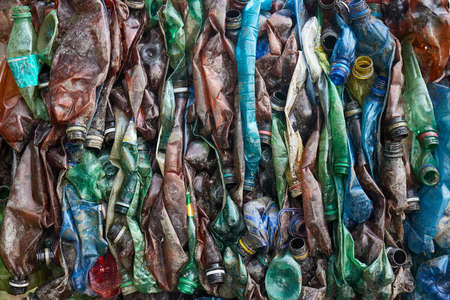 Plastic garbage in nature, pollution.Empty used dirty plastic bottles.Environmental pollution. Ecological problem.