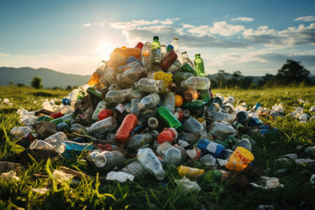 A pile of plastic bottles and other trash on the ground, AI