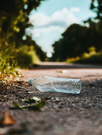 Plastic bottles left on the road. Concept of environmental pollution.