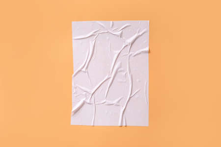 Shabby and messy crumpled and torn poster paper texture as graphic design element background, white paper scraps glued to a wall