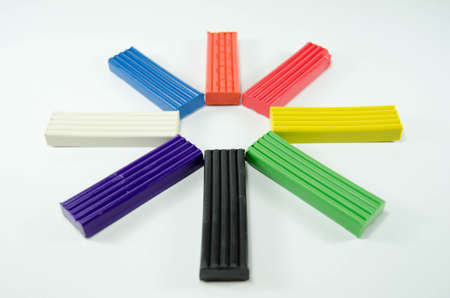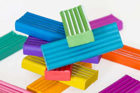 Plasticine mass for modeling colored super light plasticine on a white background.