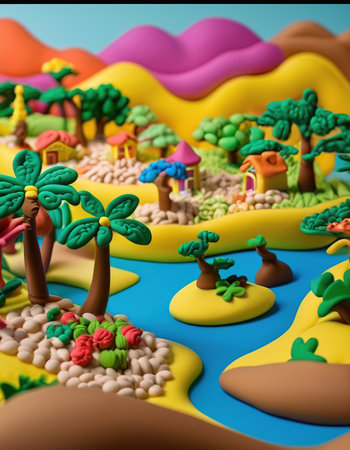childrens fun hobby with plasticine texture shapes, created with generative ai