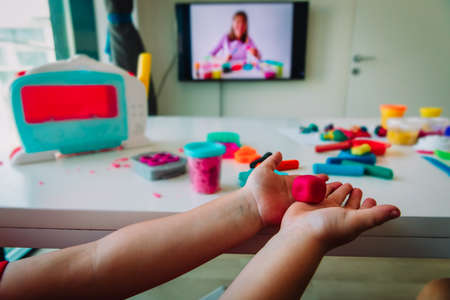 Online lesson for kids on clay molding, remote learning and creative activities