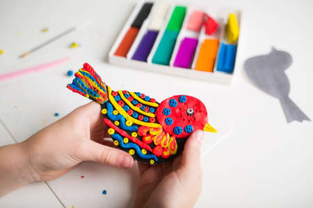 plasticine craft for kids. clay bird. childrens art and creative.