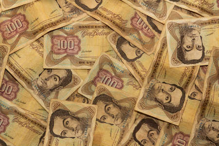 Very old. outdated vintage bolivares 100 bank note currency bill venezuelan bills.