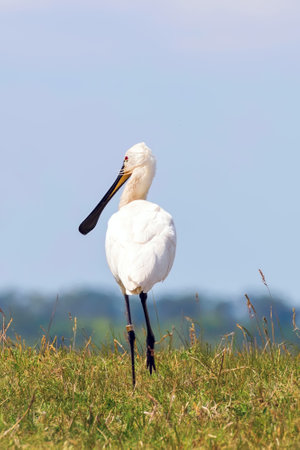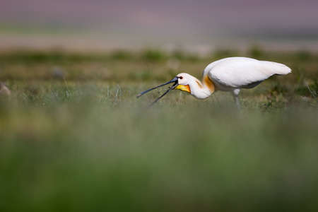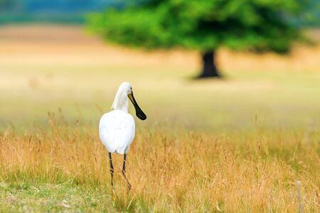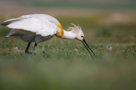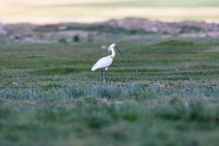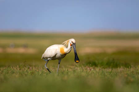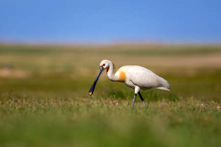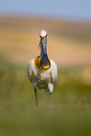 Eurasian Spoonbill (Platalea leucorodia) in the grass