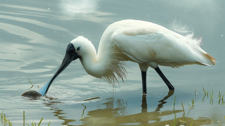 the royal spoonbill is wading in the water drinking