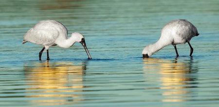 White Spoonbill, platalea leucorodia, Adult searching through Water for Food