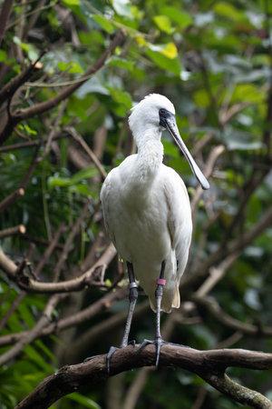 Beautiful White Bird , Black-faced spoonbill, on the tree