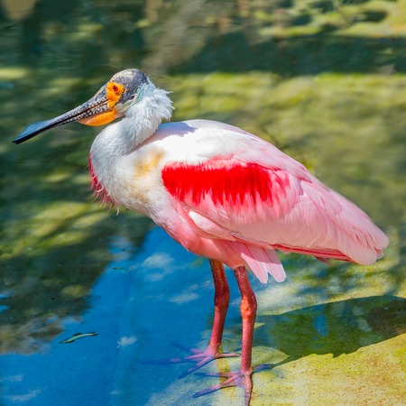 Colorful Roseate Spoonbill Ibis from South America portrait, closeup, details