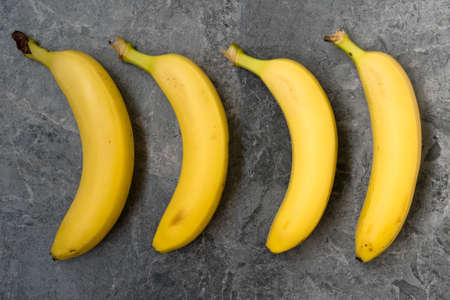 Top up view isolated fresh yellow banana isolated on dark table. added copy space for text.