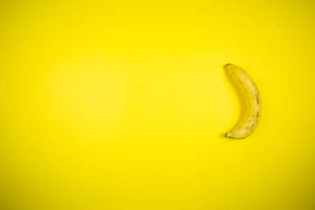 Top view. Yellow banana on a yellow background with place for text. Flat lay
