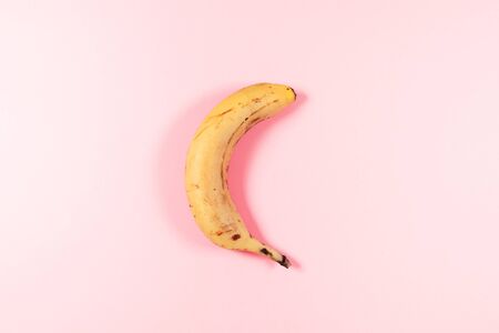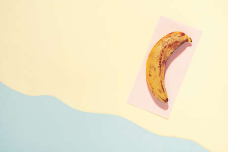 Banana on a gray background. Against pink and yellow background. Minimal concept