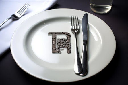 Person holding fork empty plate in front psychological art generation. Concept Surrealism, Psychological Art, Empty Plate, Fork, Portrait