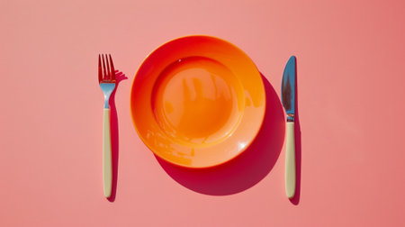 bright orange serving dish, top view, with copy space and empty space. this digitally manipulated image showcases the caffenol developing process, resulting in a beige hue. shot with a fujifilm x-t4, it exudes social commentary through its cartoonish simplicity and subtle chromatism. ai generated