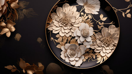 beautiful plate and fresh perfect colorful flowers standing on luxury table