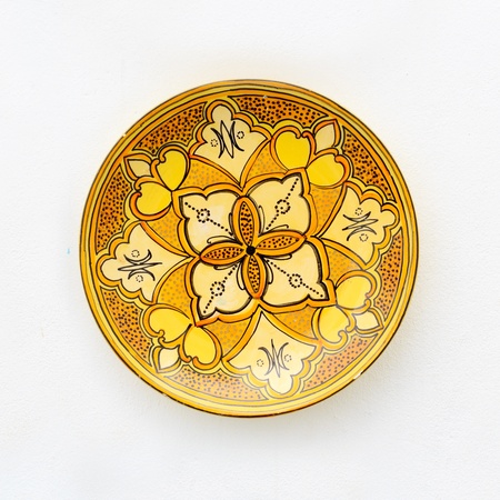 Arabic painted ceramic plates abstract background.