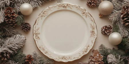 Christmas Background with Decorative Plate and Ornaments